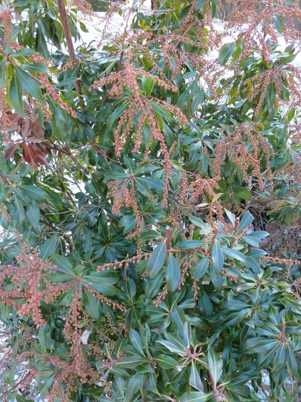 Pieris Japonica. It is sometimes called Japanese andromeda, or Lily of the Valley shrub. It is also the only plant on the list of